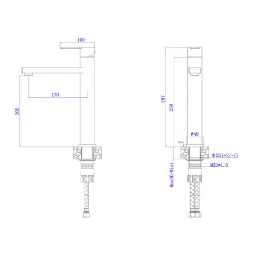 Смеситель для умывальника (SUS 304) D35, серия BON AV Engineering