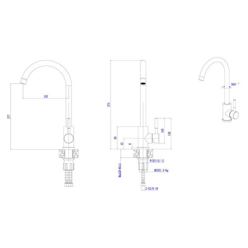 Смеситель для кухни (SUS 304) D35, серия ZAR AV Engineering