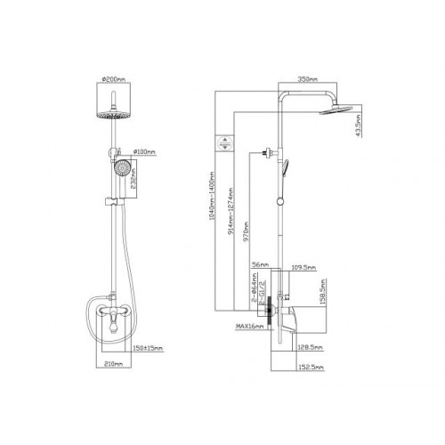 Душевая штанга, мм: регулиремая высота 1040 - 1400,