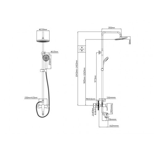 Размер душевой лейки, мм: Ш-115, В-250,