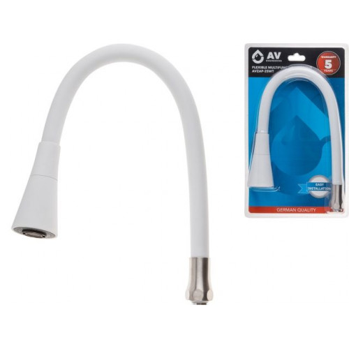 Излив гибкий с двухрежимной лейкой белый для смесителя, AV Engineering