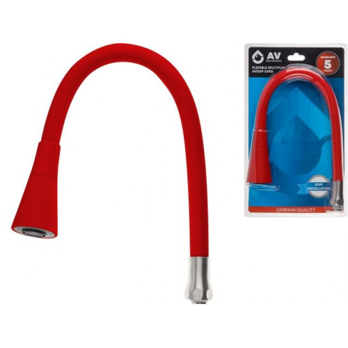 Излив гибкий с двухрежимной лейкой красный для смесителя, AV Engineering
