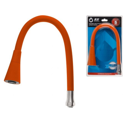 Излив гибкий с двухрежимной лейкой оранжевый для смесителя, AV Engineering