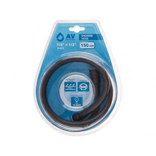 Шланг душевой, PVC, 1/2" г-г 150 см, чёрный, AV Engineering