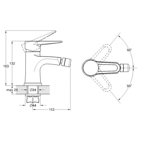 Угол поворота рукоятки гор.: 50°