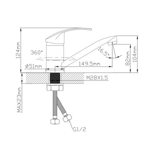 EC023150 Подводка гибкая, SUS, иголка м10 короткая - гайка 1/2" 150 см ECONOCE,