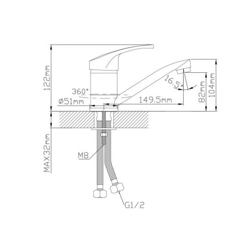 EC033150 Подводка гибкая, Nylon, иголка м10 короткая - гайка 1/2" 150 см ECONOCE,