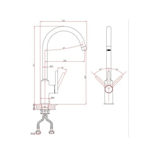 Диаметр присоединения подводки: 1/2" x м10,
