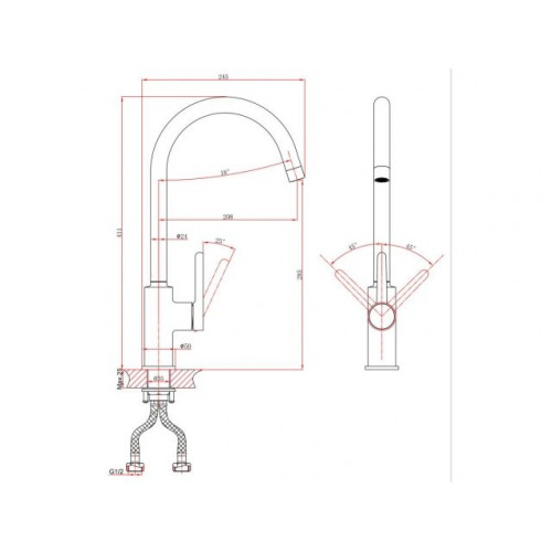 Угол поворота рукоятки вертик.: 25,