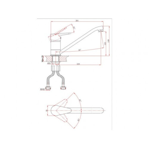 Угол поворота рукоятки гор.: 50,
