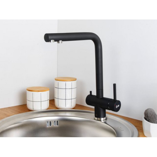Смеситель для кухни (SUS 304) D35, серия ZAR с краном для пит. воды черный AV Engineering