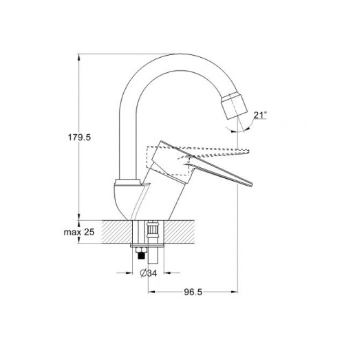Угол поворота рукоятки вертик.: 25,