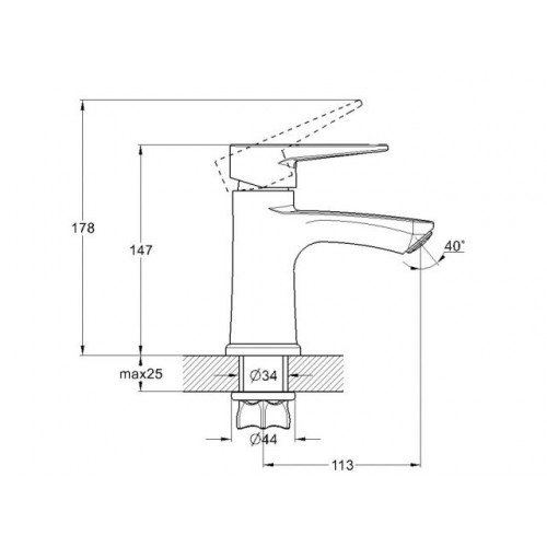 Угол поворота рукоятки вертик.: 25,