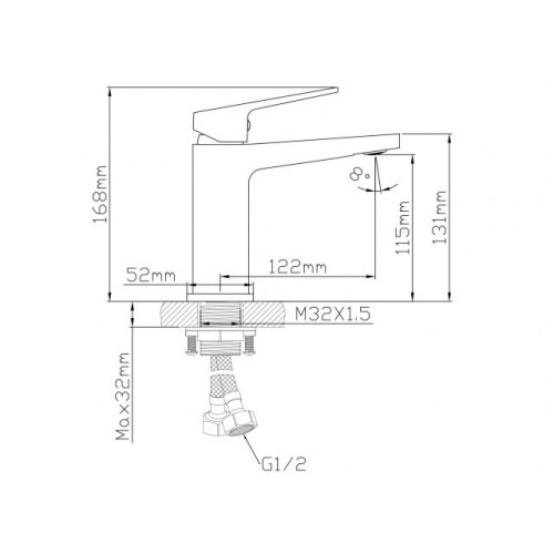 Угол поворота рукоятки гор.: 50°,