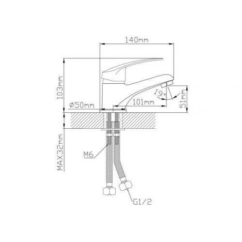 Угол поворота рукоятки гор.: 50°,