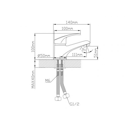 Угол поворота рукоятки гор.: 50°,