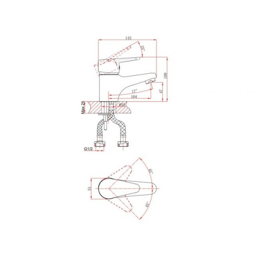 Угол поворота рукоятки гор.: 50,