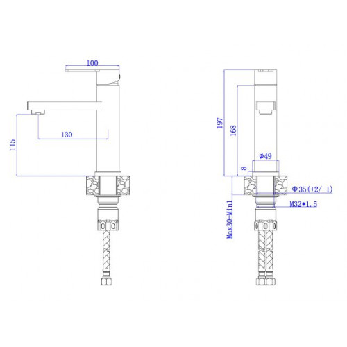 Смеситель для умывальника (SUS 304) D35, серия BON AV Engineering