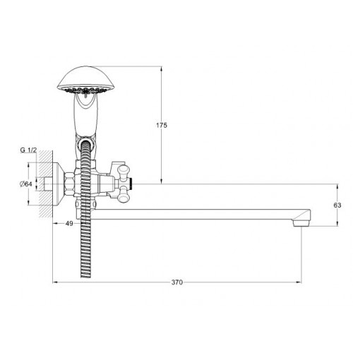 Диаметр резьбы душевого шланга, дюйм: 1/2",