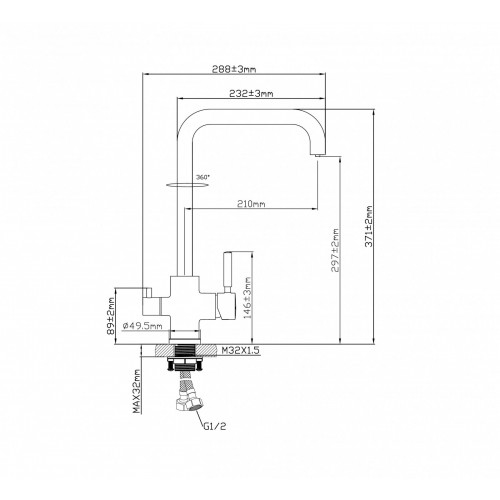 | Диапазон рабочего давления, бар1,5 - 3 | Длина излива, см29,7 | Максимальный расход воды, л/мин20 |