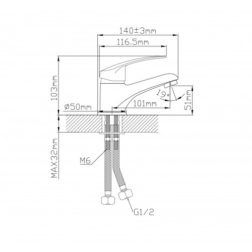Технические характеристики Смеситель латунный для раковины и умывальника "Oasis" L3005MSh_Pab (М6, 10,1см)