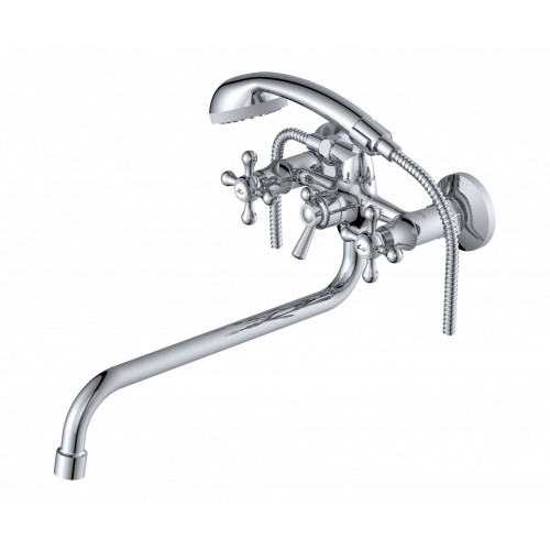 Двухвентильный смеситель для ванной из коллекции Vincent. Корпус из латуни, душевая лейка. Крепление на эксцентриках, присоединительный размер - G1/2