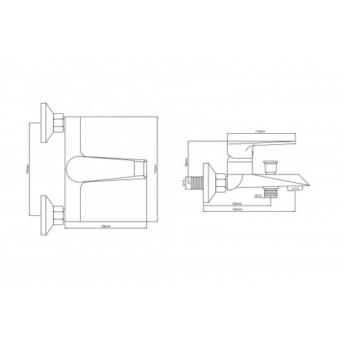 Технические характеристики Смеситель настенный латунный для ванной комнаты "Oasis" L2002M (G1/2, 6см)