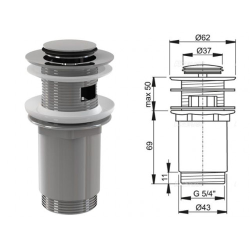 Водослив для умывальника click/clack 5/4, цельнометаллический с малой заглушкой, Alcaplast