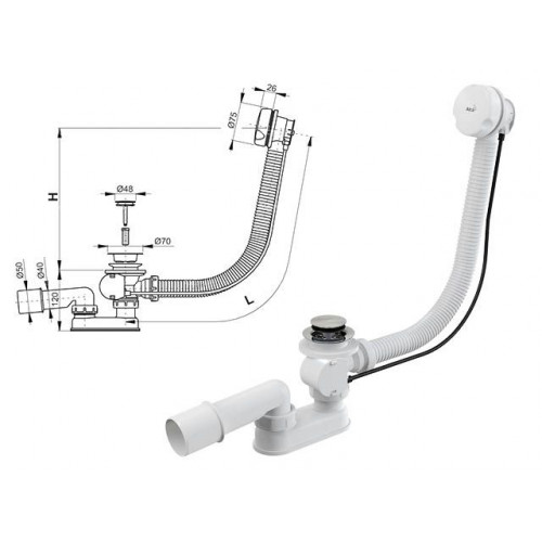 Сифон для ванны автомат комплект, белый, Alcaplast