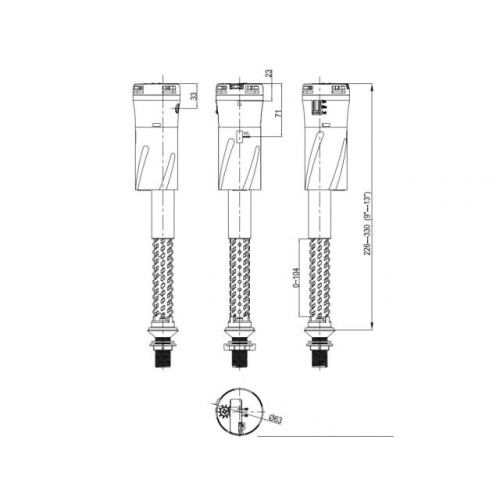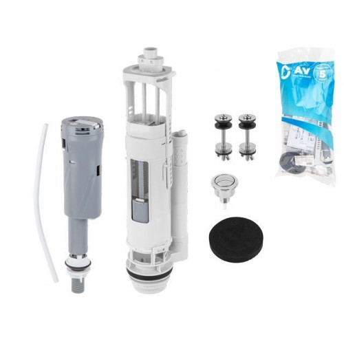 Арматура устанавливается в сливной бачок унитаза, обеспечивающая регуляцию наполнения и слива воды. Также арматура обеспечивает герметичное удерживание воды в бачке. Впускной механизм в арматуре имеет инновационный фильтр с верхней вставкой, который удобно извлекать для очистки. Во время работы весь осадок, проходящий через фильтр, промывается и вытекает из арматуры, таким образом, клапан может работать стабильно даже под мутной водой. Простая и быстрая установка. Уникальная микрорегулировка по 1.8мм на верный уровень воды, по мере необходимости. Стабильная работа под высоким давлением в 20 Бар. Арматура универсальная, подходит для всех типов унитазов. В двухрежимной имеется 2 кнопки - слив на 13 и на 23 всего объема бачка.