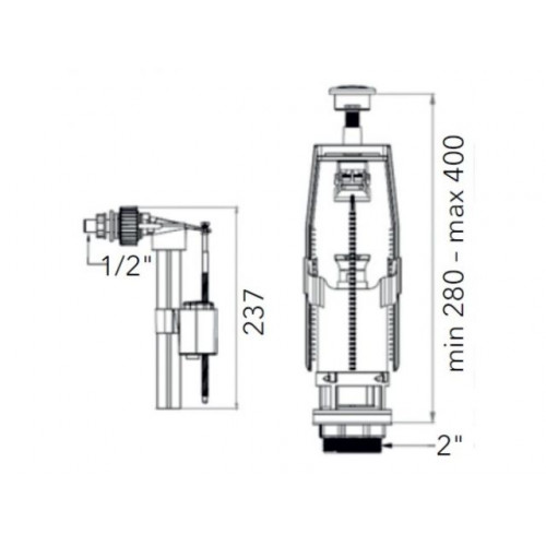 Арматура для смывного бачка c функцией СТАРТ/СТОП с клапаном боковой подачи, AV Engineering