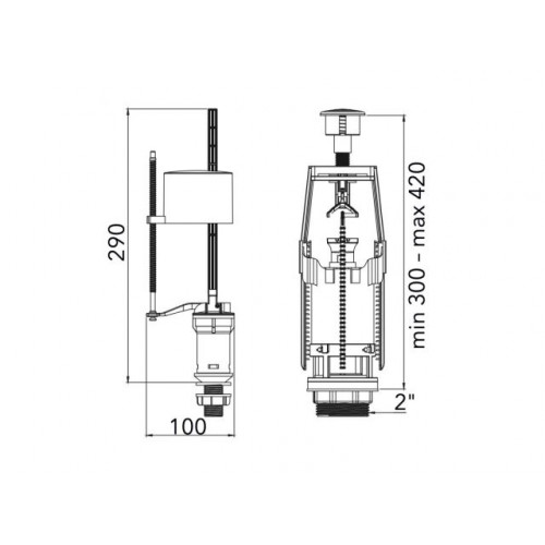 Арматура для смывного бачка c функцией СТАРТ/СТОП с клапаном нижней подачи, AV Engineering
