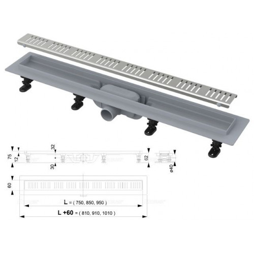 Водоотводящий желоб с порогами для перфорированной решетки (Simple), Alcaplast