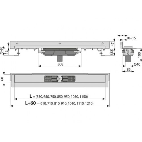 Водоотводящий желоб с порогами для перф. решетки и регул.ворот.к стене, вертик. сток, 550, Alcaplast