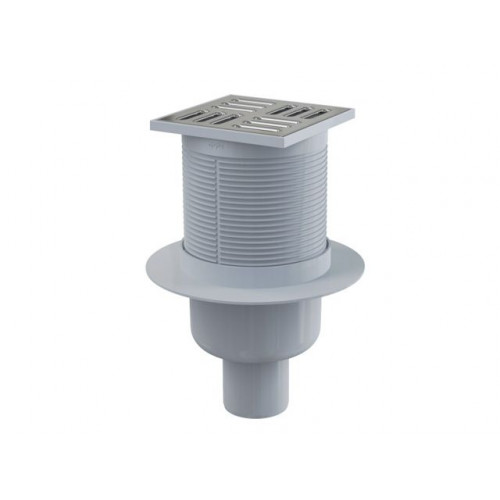 Сливной трап 105х105/50, подводка – прямая, решетка – нерж. сталь, гидрозатвор – мокрый, Alcaplast