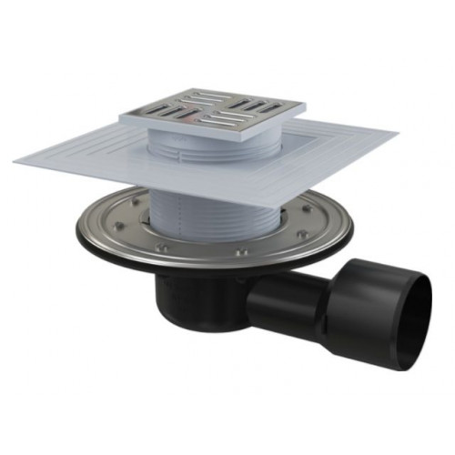 Сливной трап 105х105/50/75, боковой сток, решетка – нерж. сталь, гидрозатвор – комб. Alcaplast