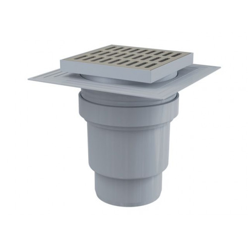 Сливной трап 150х150/110, подводка – прямая, решетка – нержавеющая сталь, воротник – 2-х уровневая изоляция, гидрозатвор - мокрый