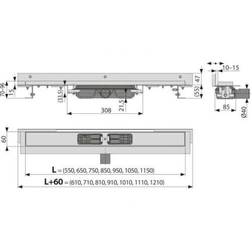 Водоотводящий желоб с порогами для перф. решетки и регул. воротником к стене, APZ104-650, Alcaplast