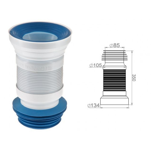 Благодаря своей гибкости и эластичности гофра для унитаза позволяет смонтировать унитаз в удобном для вас месте и с разным удалением от канализационного стояка.