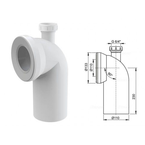 Колено для унитаза 90° с присоединением DN40, Alcaplast