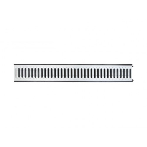 Канал пластиковый системы Lite из вторичного ПЭ-ПП. Имеет сформированное отверстие для подключения труб 110 мм для выпуска через дно лотка, специальный паз для подключения других лотков под углом 90 и специальный паз для распила лотка. Оцинкованная решетка с безболтовым креплением. Класс нагрузки А 15.