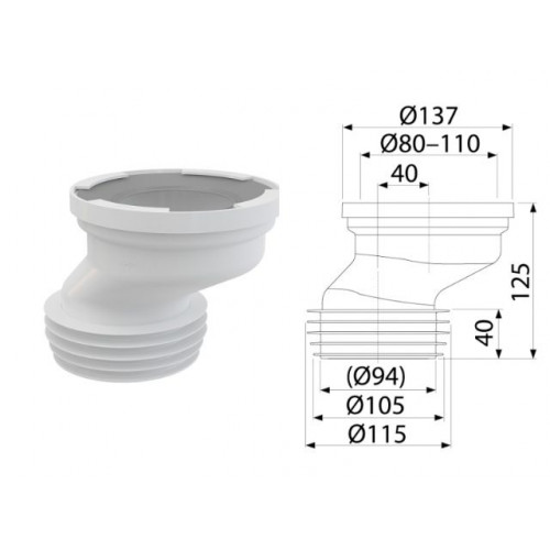 Патрубок для унитаза эксцентрический 40мм, Alcaplast