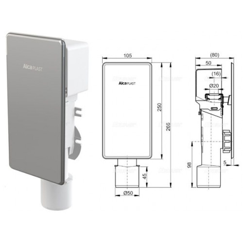 Сифон для сбора конденсата под штукатурку D40, D50, нерж. сталь, Alcaplast