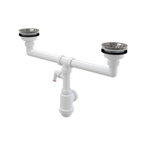 СИФОН ДЛЯ СДВОЕННОЙ МОЙКИ С НЕРЖАВЕЮЩИМИ РЕШЕТКАМИ O115 И ШТУЦЕРОМ