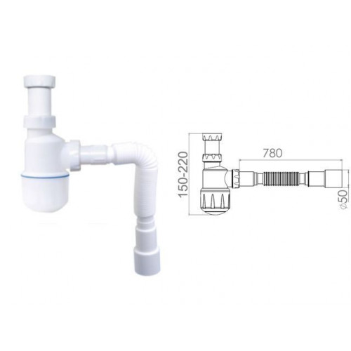 Сифон для умывальника без выпуска, гайка 32 мм, с гибкой трубой 1 1/4"- 40/50мм, AV Engineering
