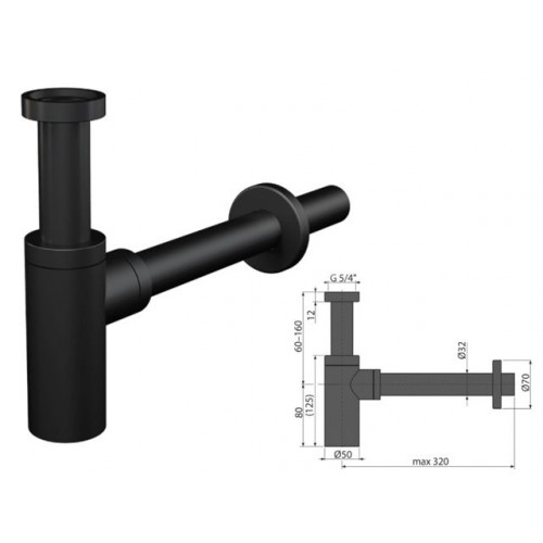 Сифон для умывальника D32 DESIGN, цельнометаллический, черный мат Alcaplast