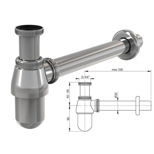 Сифон для умывальника O32, цельнометаллический, с накидной гайкой 5/4, Alcaplast