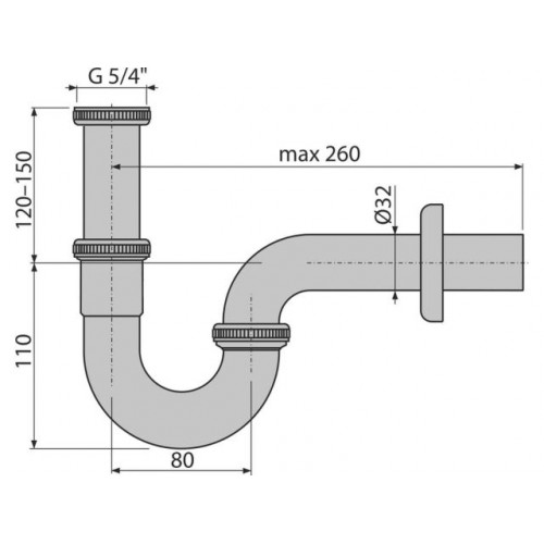 Сифон для умывальника O32, U-форма, цельнометаллический, с накидной гайкой 5/4, Alcaplast