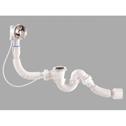 Сифон для ванны автомат U-образный с выпуском и переливом (Lt), с гибкой трубой 40х40/50, BAKIMAY