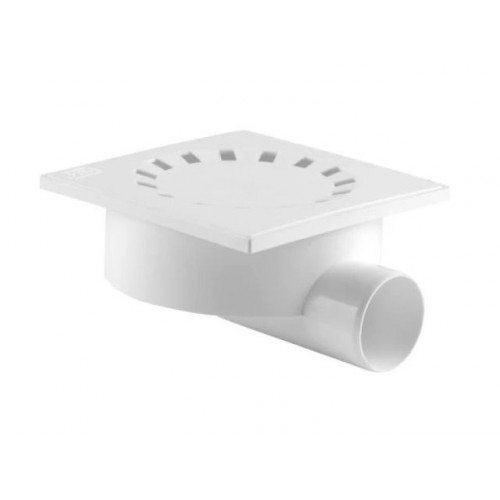 Сливной трап гориз. 50 сух.затв., реш.пласт. 150х150 мм, бел., РТП